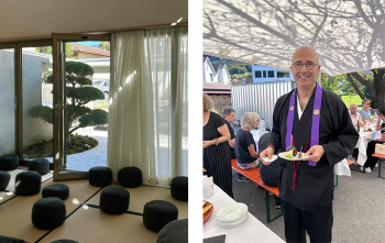 Am 20. September 2025 wurde das Zendo Balzers mit seinem Meditationsraum und dem Zen-Garten eingeweiht, Räumlichkeiten, welche in schöner Weise eine moderne Architektursprache mit der japanischen Tradition verbinden. Zugleich wurde die öffentliche Transmission von Roland Frick zum Zen-Lehrer vollzogen, geleitet von Dieter Wartenweiler Roshi. Bei schönstem Wetter fanden zahlreiche Gäste im und um das neue Zendo Raum. Wir wünschen der Sangha von Balzers ein inspiriertes Zazen und für die Zukunft mit Zazenkai und Sesshin einen dichten und innigen Zen-Weg, begleitet vom frisch autorisierten Sensei Roland Frick.